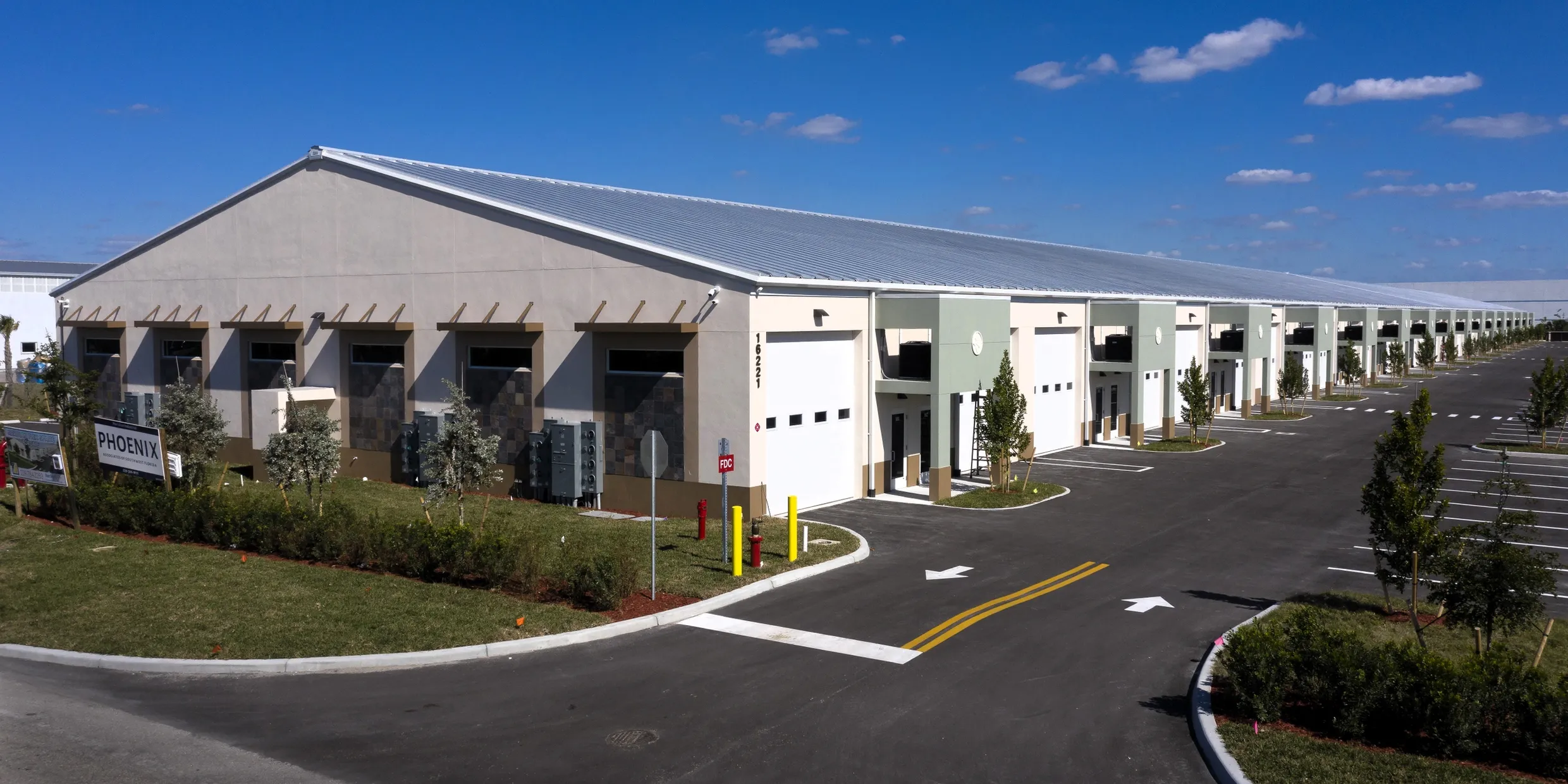 Meridian Flex Storage Suites is an 80,000-square-foot modern flex space facility in Fort Myers, FL, designed with concrete block and steel construction for versatile business storage needs. Units feature impact resistant windows and doors, 14′ x 14′ electric roll-up doors, fire alarm and suppression systems, ADA-compliant bathrooms, and energy-efficient LED lighting. The project was completed in February 2025 with Phoenix Associates of Florida, Inc. as the general contractor. This electrical construction project showcases advanced systems for lighting, security, and operations tailored to a contemporary industrial flex environment.